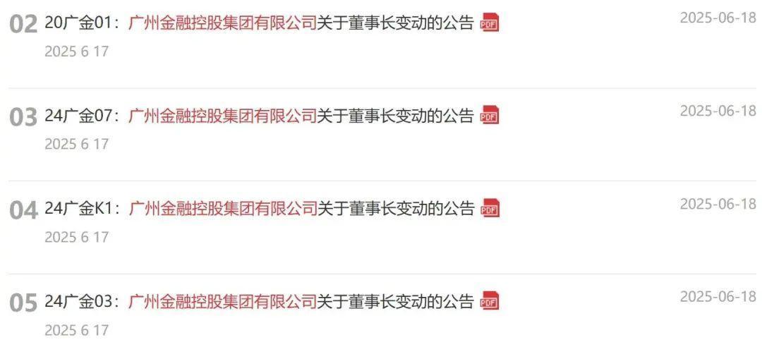 公告显示,根据《广州市人力资源和社会保障局关于徐秀彬、聂林坤同志职务任免的通知》(穗人社任免【2025】63号),经广州市人民政府批准,聂林坤不再担任广州金融控股集团有限公司董事长职务,任命徐秀彬担任该职务。